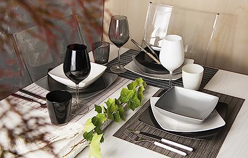 Excelsa Eclipse Servizio Piatti Quadrati 18 Pezzi, Ceramica, Bianco, Nero e Grigio