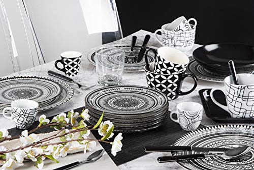 Excelsa Etnik Servizio Piatti 18 Pezzi, Ceramica, Bianco e Nero