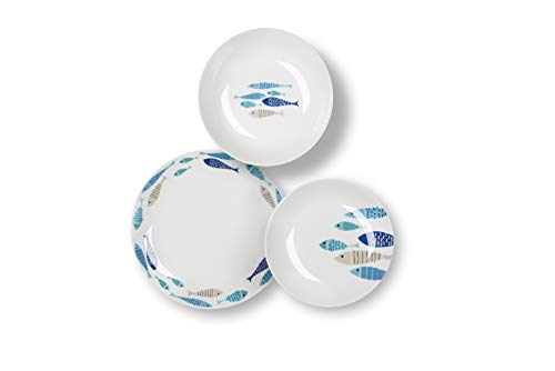 Excelsa Ocean North Sea Servizio Piatti Da 18 Pezzi, Porcellana & Ocean Set Bicchieri Acqua, 6