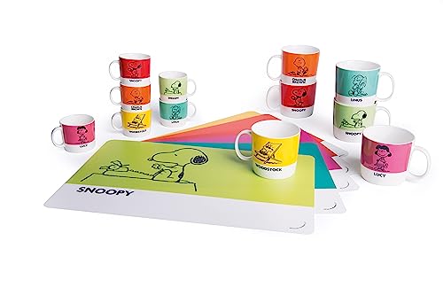 Excelsa Peanuts Set Tazze Latte, Porcellana, Multicolore, 230 ml, 9x12x8 cm, 6 Unità