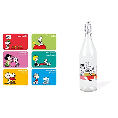 Excelsa Peanuts Set 6 Tovagliette, Polipropilene, Multicolore, 6 pezzi & 61544 Bottiglia, decorata, 1 lt