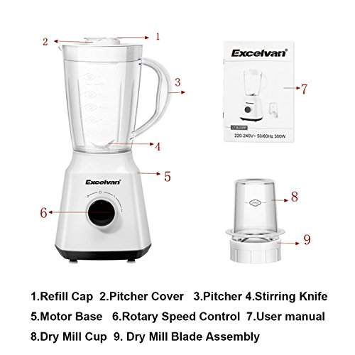 Excelvan 300W 1.25L 2 in 1 Elettrico Frullatore Spremitore Spremiagrumi Spremifrutta Spremilimoni Macinatore a 2 Velocità