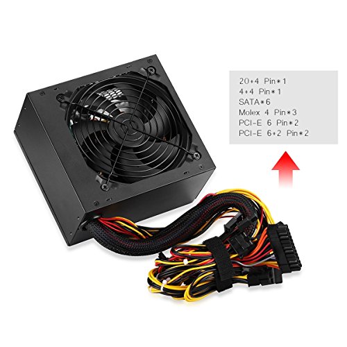 EXCELVAN 600W-800W Supporta Intel e AMD Double 6+P6+2PIN Alimentatore Modulare Pc 180V-240V, 6A a Basso Rumore (600W)