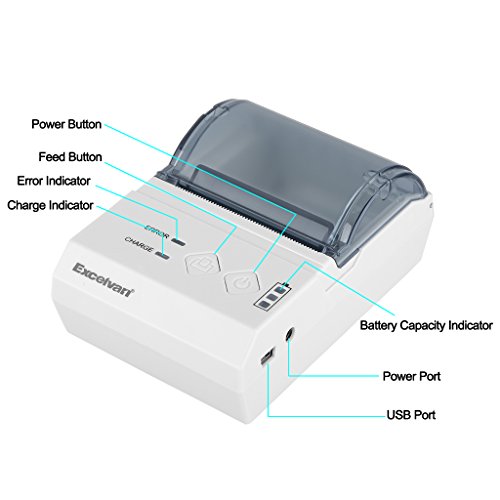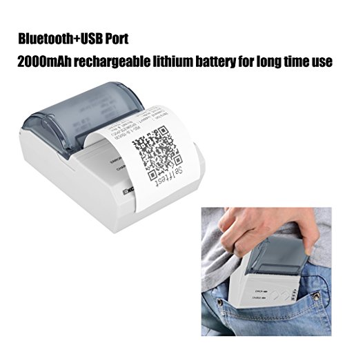 Excelvan Senza Fili 58mm Portatile Bluetooth Stampante Termica di Scontrini Dot ESC/POS Wireless Stampanti a Matric per Android & IOS & Windows & Linux Bianco