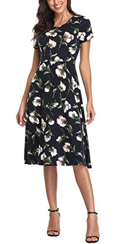 EXCHIC Vestito da Donna Abito Boho Abiti con Stampa Floreale Maniche Corte (M, 8)