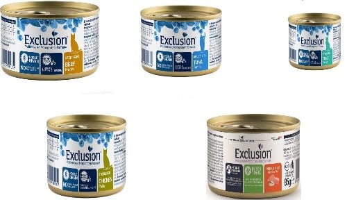 Exclusion Cibo Umido Gatto. 12 LATTINE ASSORTITE DA 85g CADAUNO