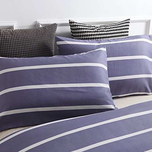 Exclusivo Mezcla Set Copripiumino Matrimoniale con 2 Federa Reversibile in Microfibra con federe, Righe Viola Grigio (200x200 cm)