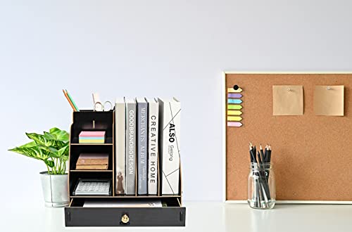 Organizer da scrivania: questo organizer da scrivania è progettato per contenere molti documenti diversi, adatto per ufficio, scuola, studio e casa. 3 scomparti alti combinati con 3 strati di ripiani, oltre a un cassetto nella parte inferiore di questa unità, è progettato per contenere la maggior parte delle riviste di dimensioni, lettere grandi e piccole, documenti, taccuini, penne, cancelleria e altro ancora.
