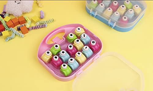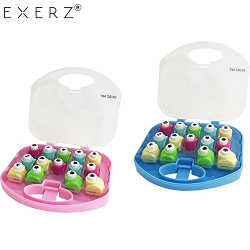 EXERZ Perforatore 14 Pezzi/Pugno di Carta Mestiere/Arte fai da te artistico/Mini Pugno a Mano per Le Carte della Festa e Cartolina d'Auguri, Fotografico, 14 Forme di Taglio (14 Pezzi, Blu)
