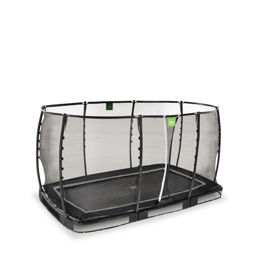 Il trampolino EXIT Allure Premium Ground è un trampolino a terra con bordo protettivo e rete di sicurezza premium. Grazie al sistema EXIT Foot Protection System (FPS), una rete che si trova tra la rete da salto e il bordo protettivo del trampolino, i trampolinisti non rimangono mai con i piedi incastrati tra le molle. Il trampolino da terra Allure è parzialmente interrato, il che lo rende facile da calpestare per tutti. Inoltre, il trampolino è dotato di una rete di sicurezza premium. La rete di sicurezza ha un'entrata sovrapposta che si chiude automaticamente, in modo da non essere lasciata aperta inosservata. Anche i tubi della rete di sicurezza sono rivestiti di schiuma XPE di alta qualità. Le molle extra-lunghe a doppio cono di ben 21,6 cm garantiscono un salto perfetto e un atterraggio morbido. Il telaio zincato e verniciato a polvere garantisce una lunga durata del trampolino. Gli anelli in fibra di vetro e i tubi piegati mantengono la rete di sicurezza ben salda e il bordo protettivo extra spesso con uno strato di Pvc idrorepellente protegge in modo ottimale sia voi che il trampolino. Dettagli: Modello: Trampolino interrato Con sistema di protezione dei piedi Materiale: PP (polipropilene) Dimensioni (larghezza x lunghezza x altezza): 214 x 366 x 200 cm Peso: 107,5 kg Età: da 3 anni