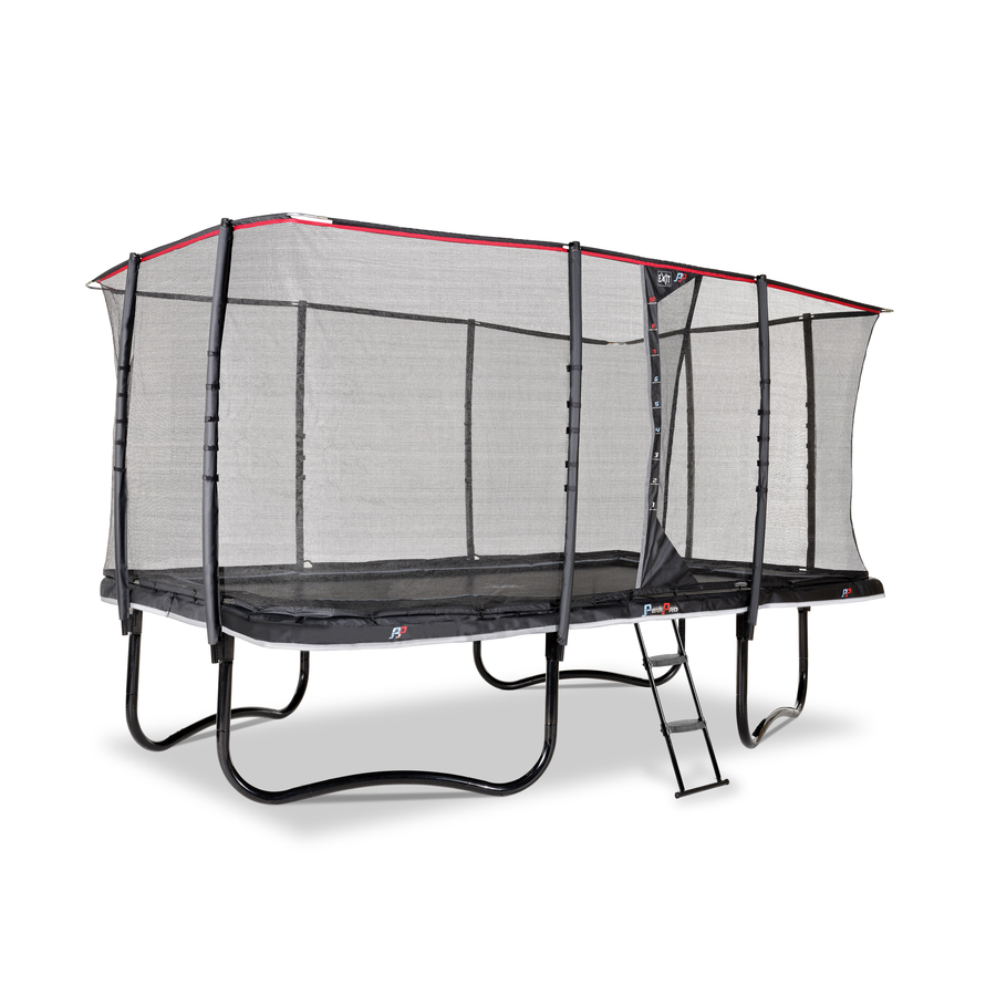 Il trampolino EXIT PeakPro con rete di sicurezza è un trampolino rettangolare con un bordo di protezione nero opaco e un comfort di salto di prima classe. Il telaio nero, i sottili dettagli di colore e le tubature riflettenti conferiscono a questo grande trampolino un aspetto robusto: un capolavoro in qualsiasi giardino. Questo trampolino viene fornito con una scala inclusa, in modo da poter salire sul trampolino in modo sicuro e veloce. Con il trampolino PeakPro nel cortile, i bambini ameranno saltare per mostrare le loro abilità. Cielo alto I trampolini PeakPro sono adatti a bambini con molta esperienza di salto. Le molle flessibili del trampolino EXIT PeakPro sono lunghe non meno di 25 centimetri e rendono facile saltare a grandi altezze. Pratica trucchi acrobatici sulla grande superficie di salto e diventa un vero professionista. La rete di sicurezza standard è dotata di una lama per saltare, così tutti possono vedere quanto in alto si può saltare. Sfida i tuoi amici e vedi chi riesce a superare per primo il nove sulla lama che salta. Trampolino stabile di altissima qualità La qualità assoluta del trampolino EXIT PeakPro si riflette, tra le altre cose, nel telaio. I piedi e il tubo superiore sono extra spessi con un diametro di 56 millimetri. In qualsiasi condizione atmosferica e con i salti più selvaggi, il trampolino rimane stabile al suo posto. Il telaio del trampolino è anche galvanizzato e verniciato a polvere per prevenire la ruggine. Quindi, saltiamo! Qualità e sicurezza vanno sempre di pari passo su EXIT Toys . La rete di sicurezza di alta qualità del PeakPro e il robusto bordo di protezione ti proteggono in caso di errore nel salto. E lo speciale sistema di protezione dei piedi assicura che non rimaniate incastrati tra le molle quando saltate. Con un trampolino EXIT PeakPro puoi praticare tutti i tuoi trucchi del trampolino in modo sicuro ogni giorno! Dettagli del prodotto: Dimensioni (lunghezza x larghezza): 244 x 427 cm Peso: 187 kg dimensioni superfi