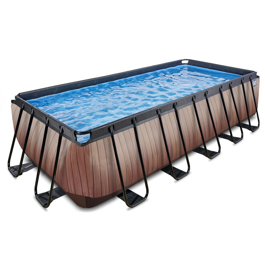 La piscina EXIT Wood 540 x 250 x 122 cm è una piscina con struttura rettangolare e aspetto in legno. Questa grande piscina è dotata di serie di una pompa a filtro e di una scaletta che consente di entrare e uscire dalla piscina in tutta sicurezza. La piscina con struttura offre spazio sufficiente per sguazzare su un materassino gonfiabile. Preferisci immergerti? La piscina EXIT Wood ha una profondità di 122 centimetri, per cui è possibile immergersi davvero nell'acqua. Con la piscina con struttura EXIT Toys di alta qualità, avrete la garanzia di vivere le più belle avventure acquatiche nel vostro giardino! Una nuotata rinfrescante nella vostra piscina! La piscina Wood Pool presenta un motivo in legno modern e forte sulla parete laterale, che la rende un vero e proprio richiamo visivo in giardino. La piscina EXIT ha pareti robuste a 3 strati in PVC e poliestere e l'interno della piscina è blu, per una sensazione di freschezza. La piscina è adatta a ospitare fino a nove persone e, essendo profonda, è possibile nuotare a corsie e immergersi. La pompa filtro inclusa mantiene l'acqua pulita e in movimento, in modo da contrastare l'inquinamento dell'acqua. La pompa del filtro può essere facilmente collegata alla piscina e, con l'aiuto delle cartucce filtranti, l'acqua viene rinfrescata. Stabile e forte! Il telaio della piscina non è solo unico, ma anche stabile e resistente. La struttura in acciaio nero della piscina ha uno spessore extra con un diametro di 50 mm e le gambe del telaio garantiscono una stabilità ottimale, in modo che la piscina sia sempre ben salda. Naturalmente si è tenuto conto anche della durata: il telaio nero è zincato e verniciato a polvere per evitare la ruggine. Il sistema di rivestimento Duplex è quello che chiamiamo noi di EXIT Toys . È il momento di una nuotata rinfrescante nella vostra piscina EXIT in giardino! Dettagli del prodotto: Dimensioni (lunghezza x larghezza x altezza): 540 x 250 x 122 cm Peso: 124 kg Profondità d'acqua consigliata: 12