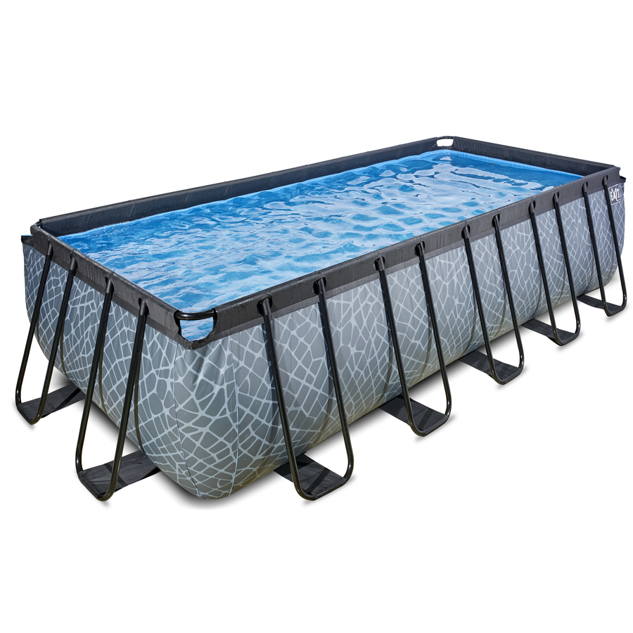 La piscina EXIT Stone 540 x 250 x 122 cm è una piscina rettangolare con struttura grigia. Questa grande piscina è dotata di serie di una pompa filtro Sand e di una scaletta che consente di entrare e uscire dalla piscina in tutta sicurezza. La piscina con struttura offre spazio sufficiente per sguazzare su un materassino gonfiabile. Preferisci immergerti? La piscina EXIT Stone ha una profondità di 122 centimetri, per cui è possibile immergersi davvero sott'acqua. Con la piscina con struttura EXIT Toys di alta qualità, avrete la garanzia di vivere le più belle avventure acquatiche nel vostro giardino! Una nuotata rinfrescante nella vostra piscina! La piscina Stone ha un modern e forte motivo di pietra sulla parete laterale, che la rende un vero e proprio richiamo visivo nel giardino. La piscina EXIT ha pareti robuste a 3 strati in PVC e poliestere e l'interno della piscina è blu, per una sensazione di freschezza. La piscina è adatta a ospitare fino a nove persone e, essendo profonda, è possibile nuotare a corsie e immergersi. Il sistema di circolazione dell'acqua incluso completa questa piscina. La pompa filtro di alta qualità Sand pulisce la piscina dalle particelle più piccole pompando l'acqua attraverso un letto filtrante. In questo modo si evita che sporco come Sand, insetti o alghe finiscano nel filtro. Stabile e forte! Il telaio della piscina non è solo unico, ma anche stabile e resistente. La struttura in acciaio nero della piscina ha uno spessore extra con un diametro di 50 mm e le gambe del telaio garantiscono una stabilità ottimale, in modo che la piscina sia sempre ben salda. Naturalmente si è tenuto conto anche della durata: il telaio nero è zincato e verniciato a polvere per evitare la ruggine. Il sistema di rivestimento Duplex è quello che chiamiamo noi di EXIT Toys . È il momento di una nuotata rinfrescante nella vostra piscina EXIT in giardino! Dettagli del prodotto: Dimensioni (lunghezza x larghezza x altezza): 540 x 250 x 122 cm Peso: 127 kg Profondi