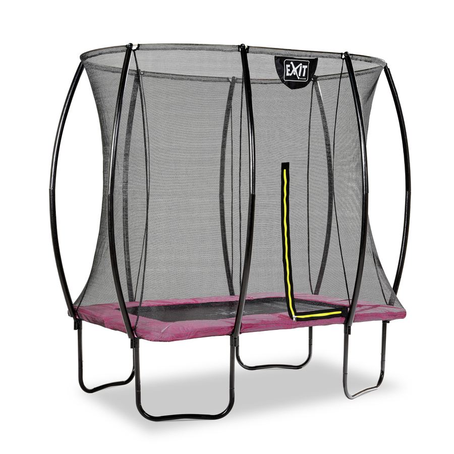 Il tappeto elastico EXIT Silhouette Trampoline on Feet è un trampolino rettangolare compatto con un bordo protettivo rosa. La rete di sicurezza, fornita di serie con i trampolini ai piedi, è dotata di pali curvi in modo che la rete sia ben tesa. Questo non è solo extra sicuro perché i bambini non possono rimanere impigliati nella rete, ma sembra anche più tranquillo in giardino. La rete di sicurezza è dotata di un'accattivante cerniera verde fluorescente, in modo da poter vedere immediatamente se la cerniera è chiusa correttamente. Il cerchio di protezione di alta qualità copre completamente le molle zincate ed è dotato di un sistema di protezione del piede appositamente sviluppato in modo che il piede non possa entrare tra le molle. Le robuste molle garantiscono un buon rimbalzo. Il telaio del trampolino Silhouette è zincato e verniciato a polvere in modo che la ruggine non abbia alcuna possibilità. I tappeti elastici EXIT Silhouette sono fantastici, solid e offrono un divertimento senza fine con i salti! Dettagli del prodotto: Dimensioni (LxP): 153 x 214 cm Altezza rete di sicurezza: 185 cm Peso: 49 kg Materiale: EPE, PP, PVC, PE, Metal l 44 molle Design chic Con sistema di protezione dei piedi Max. Peso dell'utente: 100 kg Età: a partire da 3 anni Incluso come standard Rete per saltare Bordo di protezione rosa 44 molle zincate da 14,1 cm 4 metal lene W feet Rete di sicurezza con cerniera Gancio a molla Istruzioni