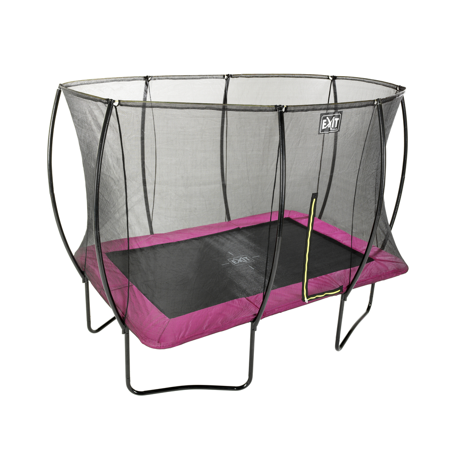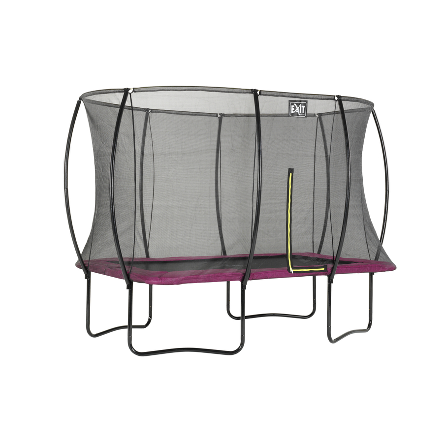 Il Silohuette EXIT è un trampolino rettangolare compatto con bordo nero protettivo opaco. La rete di sicurezza, fornita di serie, è dotata di montanti curvi in modo che rimanga tesa. Questo non solo è extra sicuro perché i bambini non possono rimanere impigliati nella rete, ma sta davvero bene in giardino. La rete di sicurezza è dotata di una sorprendente cerniera verde fluorescente in modo da poter vedere se la cerniera è ben chiusa. Il bordo di protezione di alta qualità copre completamente le molle zincate ed è dotato di un sistema di protezione del piede appositamente sviluppato in modo che non possa penetrare tra le molle. Le forti molle garantiscono un buon rimbalzo. Il telaio del trampolino Silhouette è zincato e verniciato a polvere in modo che la ruggine non abbia alcuna possibilità. I trampolini EXIT Silhouette sono ottimi, solidi e offrono un divertimento senza fine per i salti! Dettagli: Modello: Trampolino a piedi Con sistema di protezione del piede Materiale: PP (polipropilene) Dimensioni (Lunghezza x Larghezza x Altezza): 273 x 274 x 391 cm Peso: 99 kg Peso massimo utilizzatore: 120 kg Età: da 3 anni Incluso: Scheda di sicurezza Bordo di protezione nero 72 molle zincate di 16,5 cm 4 gambe metalliche Rete di sicurezza con cerniera Gancio a molla Istruzioni