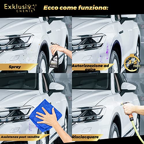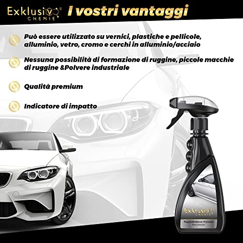 CONTENUTO DELLA CONSEGNA - 1x pratico flacone spray da 0,5 l di Exclusive Chemistry "Fly Rust Remover Premium". Garantiamo un'eccellente cura dell'auto per il tuo veicolo!