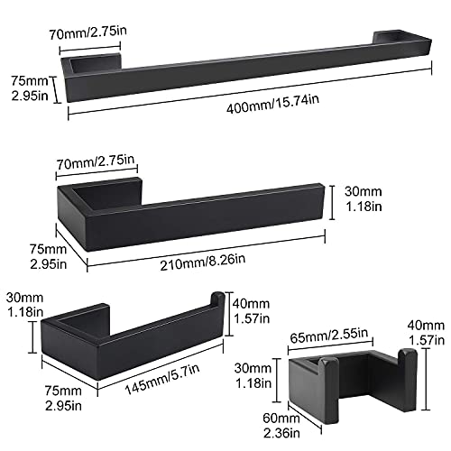 【Alta qualità】 Il set portasciugamani è realizzato in acciaio inossidabile 304, include portarotolo da 14,5 cm, portasciugamani da 21 cm, portasciugamani da 40 cm e gancio per accappatoio da 6,5 cm.