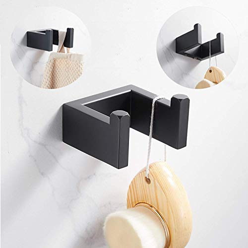 EXLECO 4Pcs Accessori Bagno Set Nero 304 Acciaio Inossidabile 40cm Portasciugamani + Porta Carta Igienica + 14cm Porta Salviette + Gancio Asciugamani