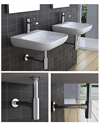 EXLECO Sifone Lavabo Bagno Acciaio Inox 1 1/4" x Ø 32mm Sifone Universale per Lavabo con Piletta Lavabo, Scarico Lavandino Bagno Sifone Regolabile Individualmente per Lavabo con Troppopieno Cromato