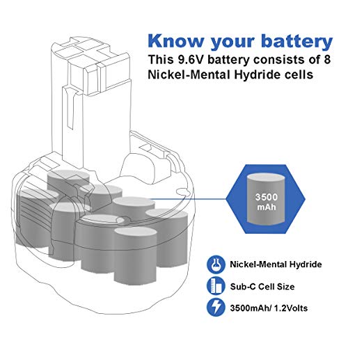 Exmate 9,6V 3,5Ah Ni-MH Batteria per Bosch PSR 960 PSR 9.6 VE-2 GSR 9.6 GSR 9.6V PAG 9.6V PLI 9.6V BAT048 BAT100 BAT119 2607335272 2607335461