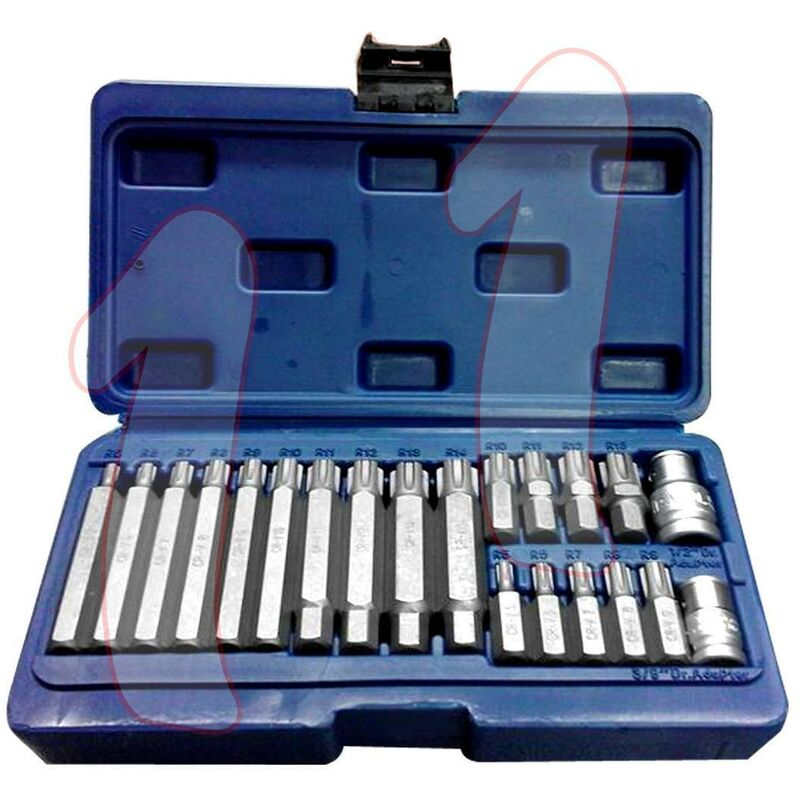 SET CASSETTA ATTREZZI CHIAVI A BUSSOLA TORX MASCHIO LUNGO RIBE 22 PEZZI DESCRIZIONE Set chiavi bussole Ribe, 22 pezzi realizzati in acciaio al cromo vanadio, cromato tutti gli inserti con 1/2 drive e zigrinatura 1 x adattatore 3/8 Antiribe Chiave 9 Presa di lunghezza 36 mm, nei formati RM5, RM6, RM7, RM8, RM9, RM10, RM11, RM12, RM13 Chiave 10 presa con 75 mm di lunghezza, nei formati RM5, RM6, RM7, RM8, RM9, RM10, RM11, RM12, RM13 e RM14 completamente ordinati in caso di plastica tutto chiave a tubo ordinato nella rispettiva dimensione individuale Strumento per l'esecuzione di altissima qualità per una lunga durata in uso quotidiano in officina