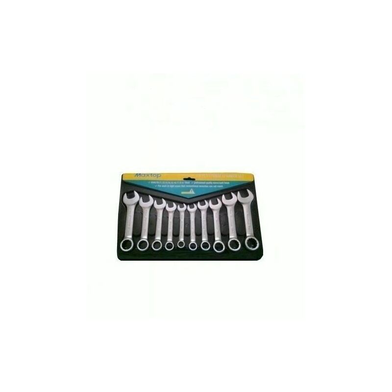 Chiavi combinate corte set 10 pz cromo vanadio Chiavi combinate in cromo vanadio 10 pezzi in contenitore di plastica. Dimensioni sotto la media per facilitarne l'utilizzo anche in aree di lavoro con spazio ridotto. - Misure: 10, 11, 12, 13, 14, 15, 16, 17, 18, 19 - Lunghezza (mm): da 105 a 140