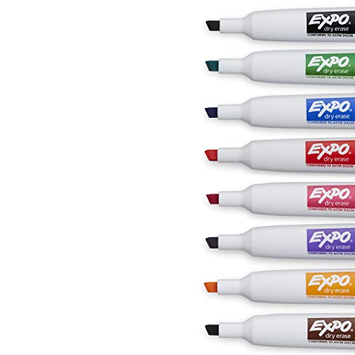 Expo - Pennarelli magnetici cancellabili a secco, con gomma, punta a scalpello, colori assortiti, 8 pezzi