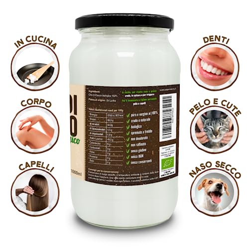 Exponatura Olio di Cocco Biologico Certificato: Fonte di Benessere e Bellezza Naturale e Sostenibile. Puro - Vergine - Crudo Spremuto a Freddo -1000ml