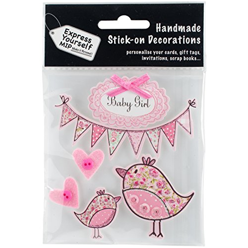 Express Yourself MIP, striscioni 3D con Scritta Baby Girl (Lingua Italiana Non Garantita) e Uccelli Adesivi, Acrilico, Multicolore, 3 Pezzi