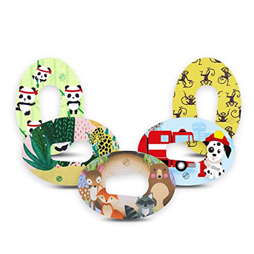 ExpressionMed - Cerotto adesivo per Dexcom G6 (Confezione da 5) - Nastro CGM pretagliato, impermeabile e che non si sfilaccia. (Fluffy Animal Friends)