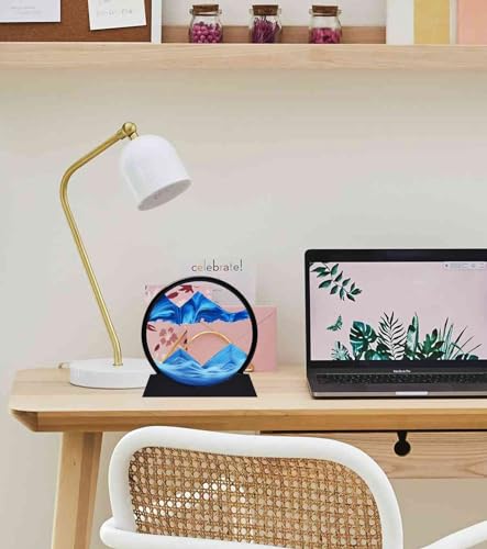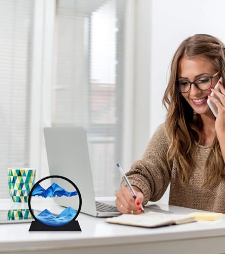 Exslend Pittura di Sabbia Che Scorre, Quadro Artistico con Sabbia Mobile con Regolatore, 3D Immagine di Arte della Sabbia in Movimento Vetro Rotondo Paesaggio di Sabbia, Blu, 7"