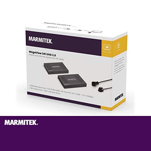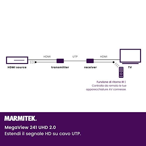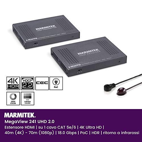 Extender HDMI Ethernet - Marmitek MegaView 241 UHD 2.0 - 4K Ultra HD - 4K60 - 40 m (4K) - 70 m (1080p) - 18 Gbps - PoC (Power Over Cable) - CEC - Canale di Ritorno a Infrarossi - HDR - HDMI 2.0