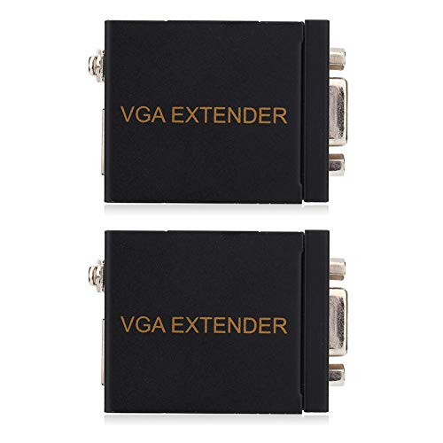 【Uscita punto a punto ad alta velocità】 Questo extender VGA include un trasmettitore di segnale e un ricevitore. Il trasmettitore collegato al motore principale convertirà il segnale VGA in TCP / IP standard e trasmetterà tramite Internet. Il ricevitore collegato al display convertirà il segnale TCP / IP standard in segnale VGA. In breve, estende il segnale VGA fino a 60 m / 197 piedi con un cavo cat5 / 6.