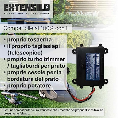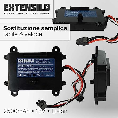EXTENSILO batteria compatibile con Bosch Indego 350, 400, M 700, M+ 700, S+ 350, S+ 400, S+ 500 tagliaerba, robot tagliaerba (2500mAh, 18V, Li-Ion)