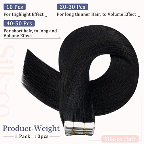 Extension Biadesive Capelli Veri 40cm #1 Nero Lucente Lunghi Naturali 2.5g * 10pz Remy Hair Extension Adesive Capelli Vergine