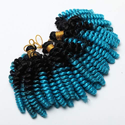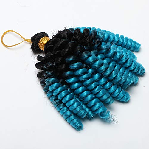 Extension Capelli Corti Ricci Marley Bob 15cm Treccine a Crochet Tessitura Matassa Sintetica Spirale 1 Bundle Braiding Hair 60g - Nero ombre Blu Chiaro