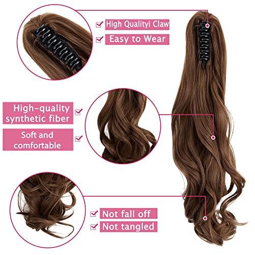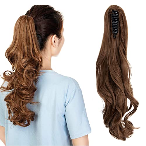 Extension per capelli lunghi e corti con coda di cavallo, con clip su mandibola e artiglio, sintetici, dritti, ricci, 45,7 cm, marrone castano chiaro