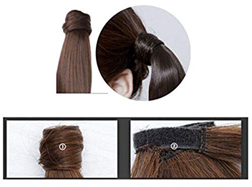 Le extension di capelli S-noilite, che si attorcigliano attorno la coda di cavallo, con attacco tramite mollette, sono morbide come la seta, capelli lisci, ondulati, ricci, per donne. Light brown 43 cm - ricci