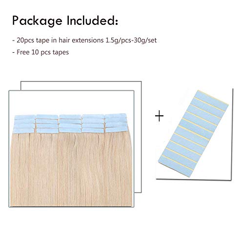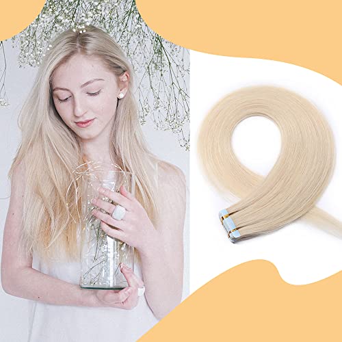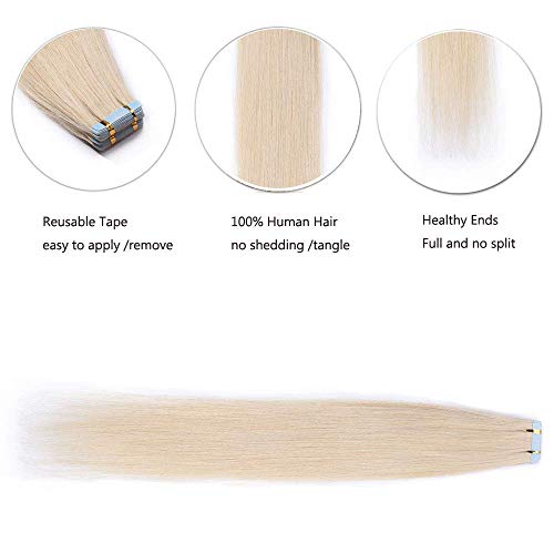 Extension Capelli Veri Biadesivo Extension Adesive Remy Human Hair 1.5g/Fascia Lisci Naturali Umani Lunghi Tape in Seamless (20pcs 45cm #70 Bleach White)