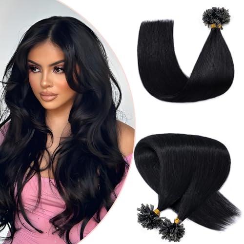 Extension Capelli Veri Cheratina 100 Ciocche 50g/set Remy Human Hair Lisci Naturali Lunghi Pre Bonded U Tip (35cm 1 Jet Nero)