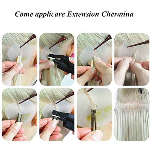 La Hair Extension sono realizzati in 100% Remy capelli umani. Il materiale è in associazione italiana hartk eratin granulare qualitativi. Keratin bondings sono composti da un materiale trasparente, Trasparente e pesanti.