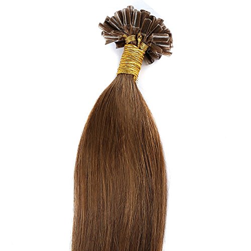 Extension Capelli Veri Cheratina 100 Ciocche 100% Remy Human Hair U-tip Nail Hair Allungamento, 55cm-50g, 06# Castano Scuro