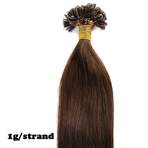 Extension Capelli Veri Cheratina 1 Grammo per Ciocca 50g/pack U Tip Remy Hair Umani Naturali Lisci (45cm #4 Marrone Cioccolato)
