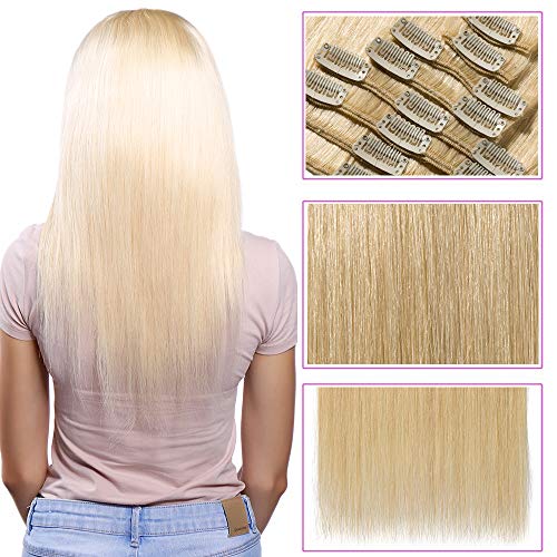 Extension Capelli Veri Clip 8 Fasce Remy Human Hair Full Head XL Set Lisci Lunga 20 pollici 50cm Pesa 105grammi, #613 Biondo Chiarissimo