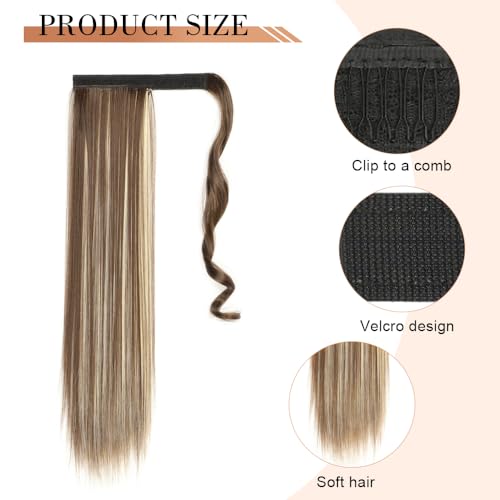 Extension Capelli Veri, Coda Finta di Cavallo, Sintetica Ponytail Lisci Posticcio per Donna- 55cm-105g-Marrone chiaro