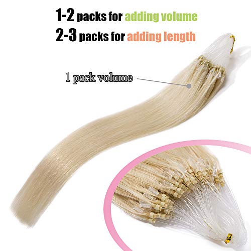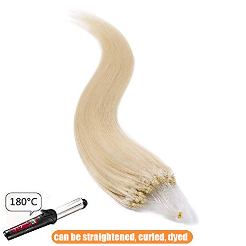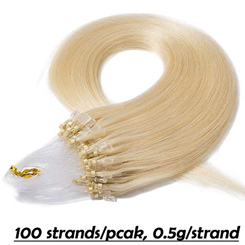 Extension Capelli Veri Microring 100 Ciocche #60 Biondo Platino - Estensioni Anelli con Loop Anellini 100% Remy Human Hair Naturali Umani Lisci Lunghi - 55cm 50g