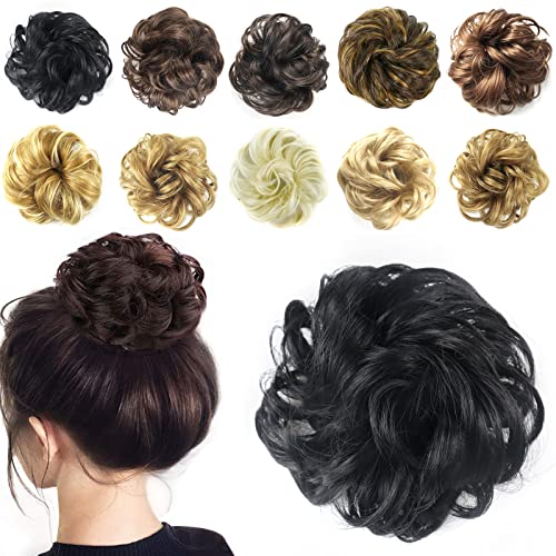 1 Extension per Chignon Coda di Cavallo Parrucchino,Extension per Chignon Coda di Cavallo estensione dei capelli Panino Capelli Elastico Estensioni voluminoso parte Ricci Disordinato,Nero,30g(1B#)