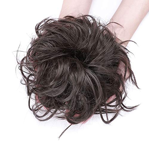 Extension Chignon Ponytail Estensione dei Capelli Capelli Posticci Elastici Ricci Coda di Cavallo Ciambella per Donna Marrone scuro