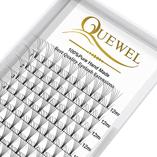 【QUEWEL extension ciglia ciuffetti】 6D, 0.07 sepessore, D curl, 12mm, 12 righe/vassoio, 120 ciuffetti per vassoio. Ciglia 100% seta fatte a mano, per extension ciglia.