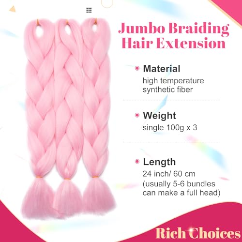 Extension clip capelli veri Hair Extensions Braiding Hair Jumbo Braids Ombre Pezzo di Capelli 3 Piece/ 300g - Rosa chiaro